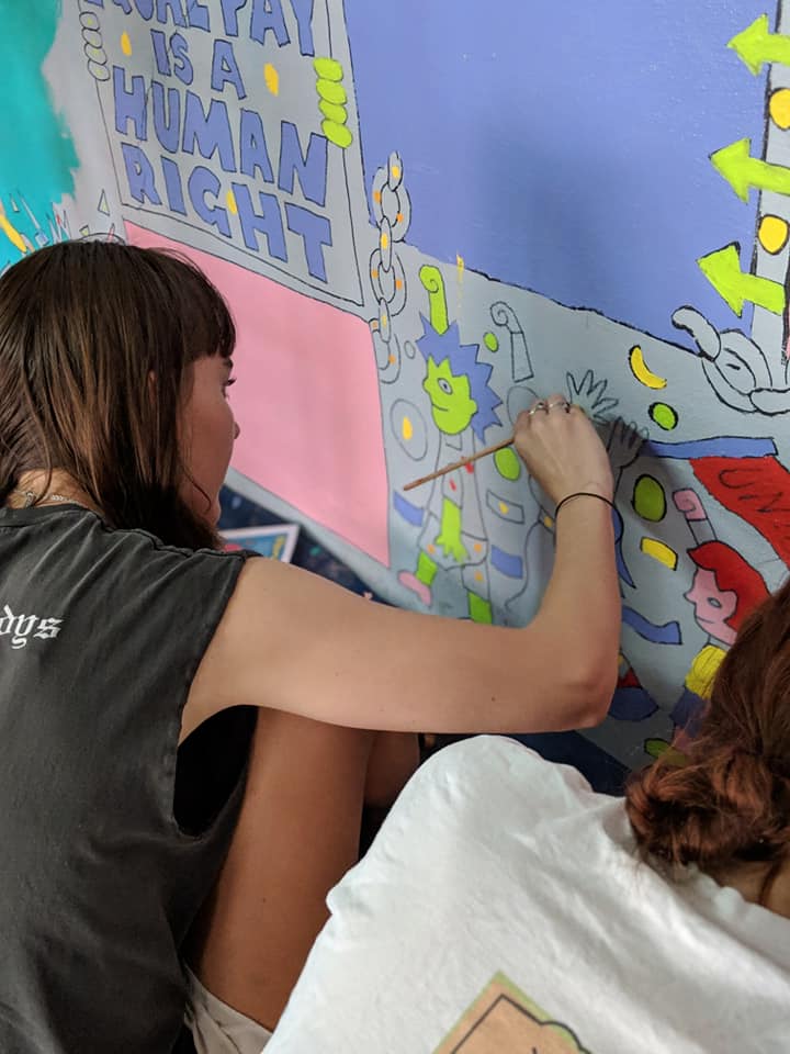 Ahead of the MASSIVE RALLY on 10 April, we're painting up a huge banner to carry through the streets. Designed by Trades Hall's resident artists, Sam Wallman and Nicky Minus, this will be a collaborative art project that will be seen by thousands of people.