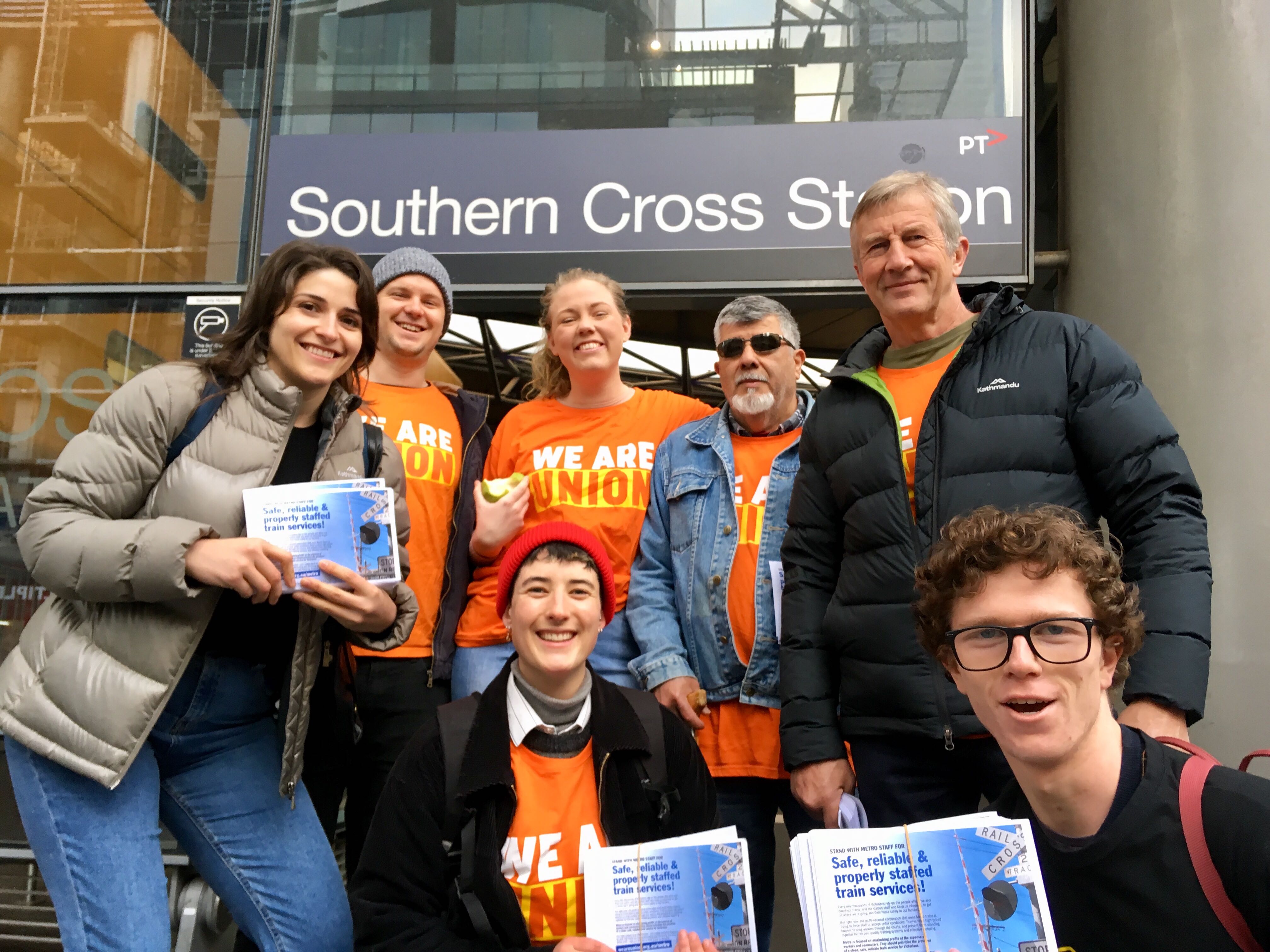 Join us and hundreds of other activists all over Melbourne in solidarity with Metro train drivers on Monday, 14th of October from 7:30am as part of our RTBU Mega Train Station Blitz!