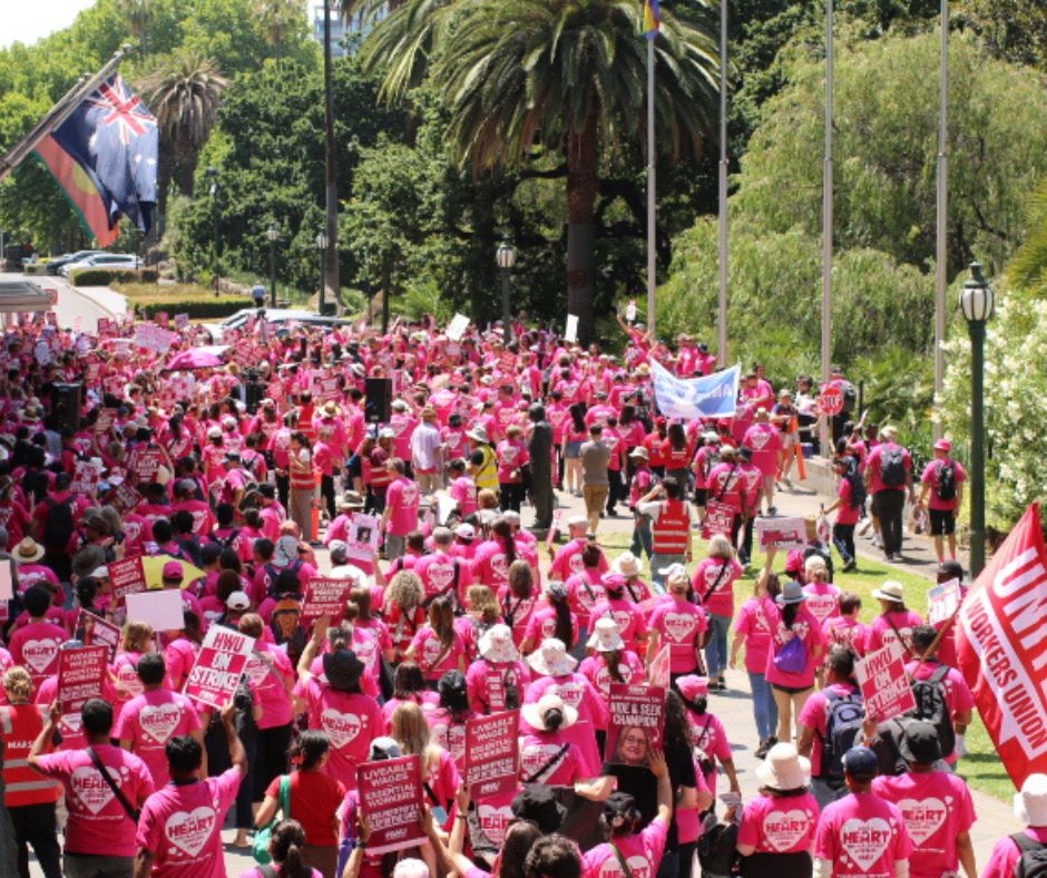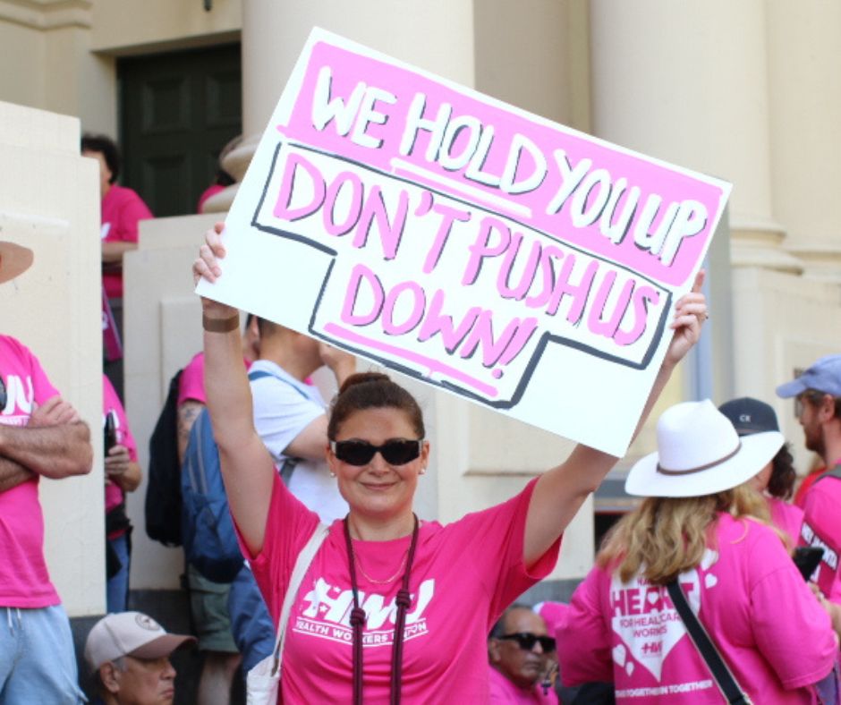 Further actions were held across the state, with many travelling in from regional areas to make their voices heard and represent co-workers unable to attend.