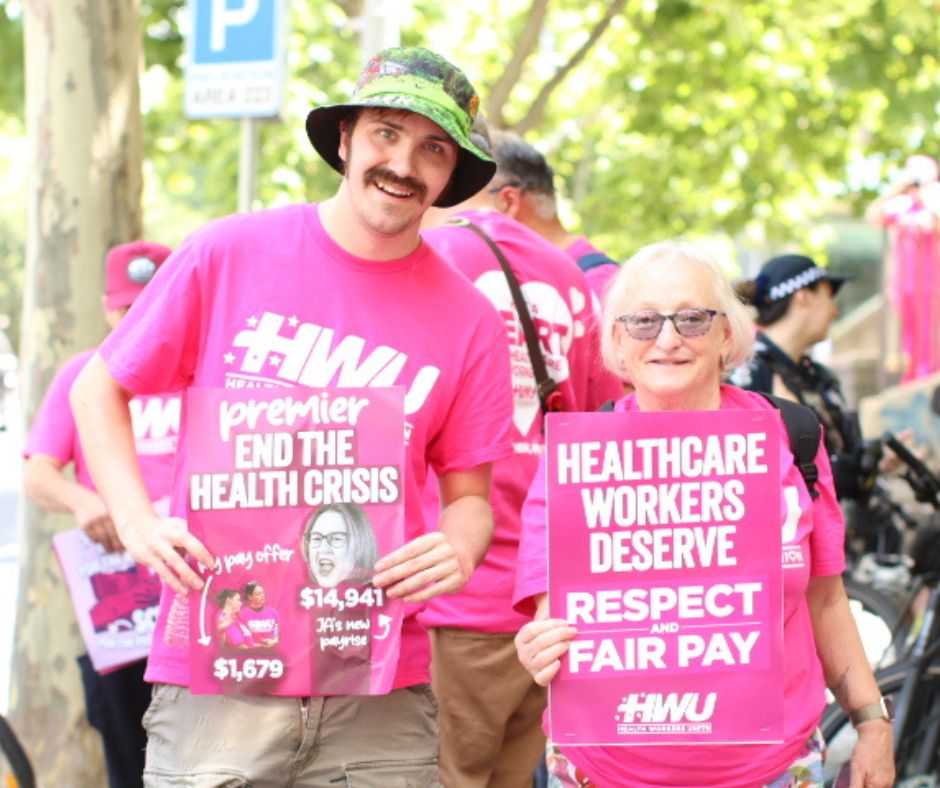 Solidarity with the more than 10, 000 workers from over 80 health care services, including all of Melbourne’s major public hospitals, that are taking part in the ongoing industrial action which began on 14 January.