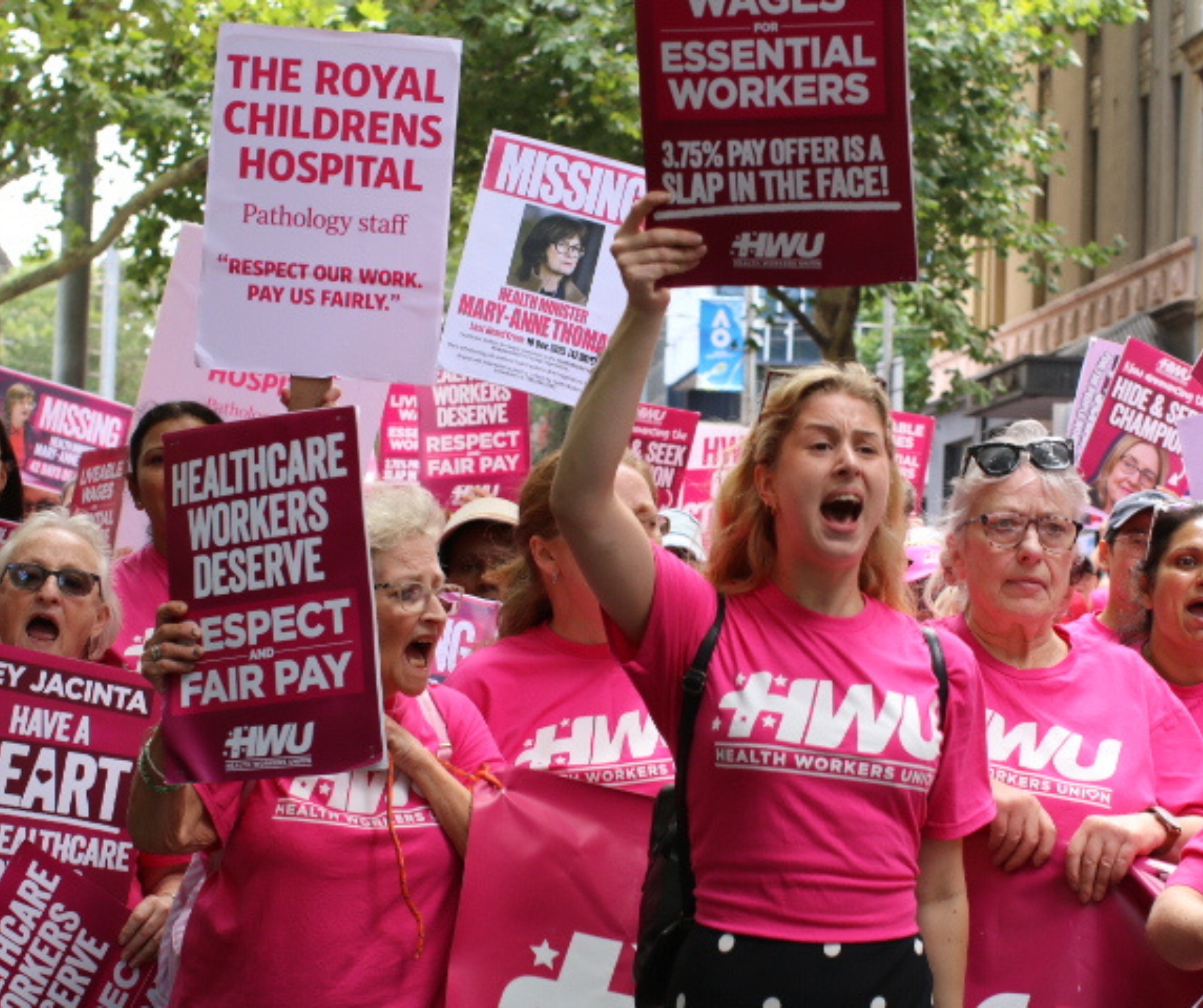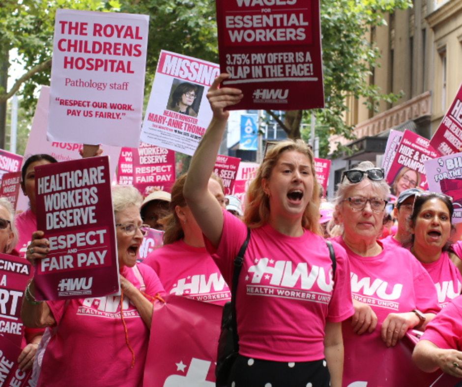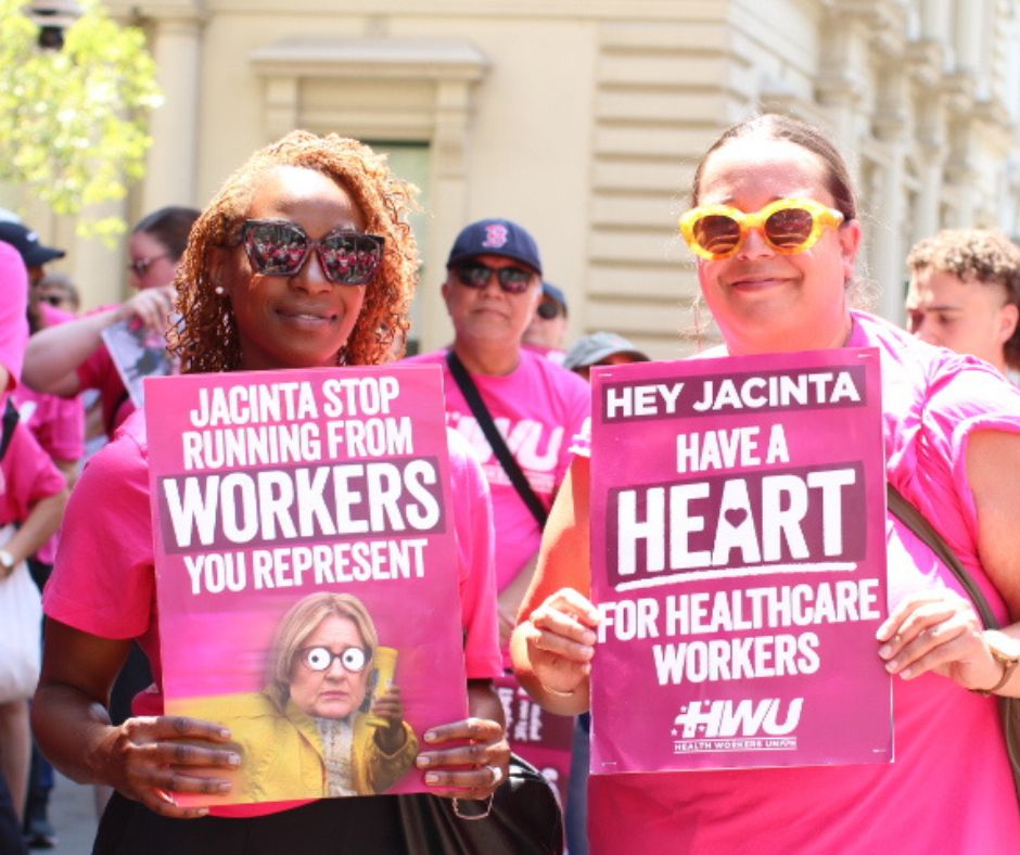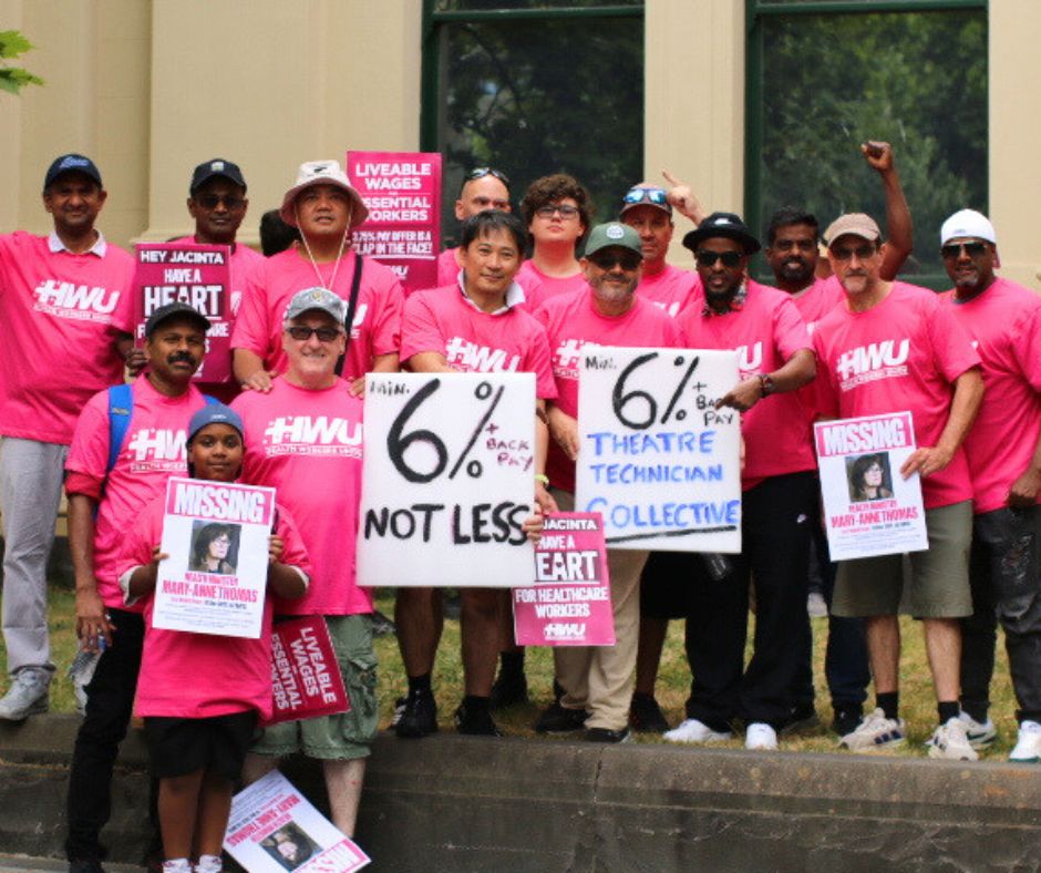 Supported by the Health Workers Union, on 20 January hundreds of workers gathered for a snap action outside the offices of Premier Jacinta Allan and Health Minister Mary-Anne Thomas over the Victorian Government’s failure to offer healthcare workers a fair, liveable wage.