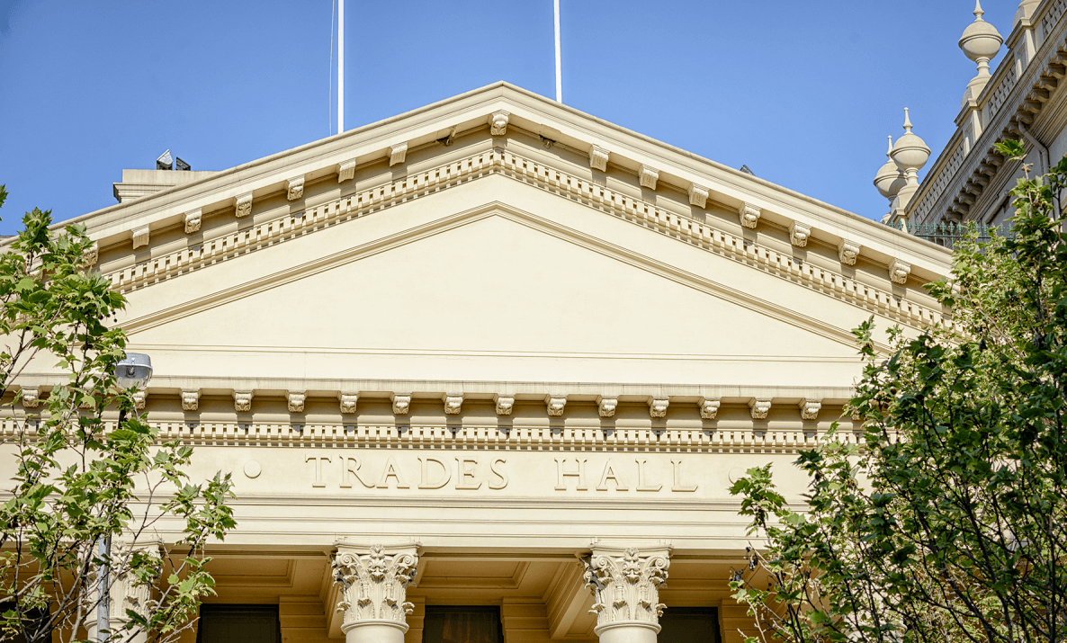 Victoria’s Trades Hall, rising grandly from the northern edge of the Melbourne CBD, is a national treasure and a symbol of the aspirations of the Australian people. For over 150 years the Trades Hall building has given form to dreams of a better life for working people and their families. It is the birthplace of organised labour in Australia, and the campaign headquarters of the world's first 8-hour day, the campaign against conscription in WWI, the "Green Bans" of the 1970s, the struggle for equal pay, and the Marriage Equality "YES!" campaign.